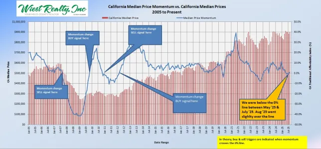 Momentum data indicates that year-over-year median prices crossed the zero line in May 2025. This is generally considered a sell signal. Downward year-over-year momentum was sustained through August 2025. General median price drops between August and February have been common since 2011, so the small upticks in August and September 2025 median prices were a bit of a surprise. September median price momentum dropped below the 0% line. We expect that trend to be the case at least through February 2026. Check out momentum charts on our web site. So far, the general data we have for the state suggest the wealth building stage is over for now.
