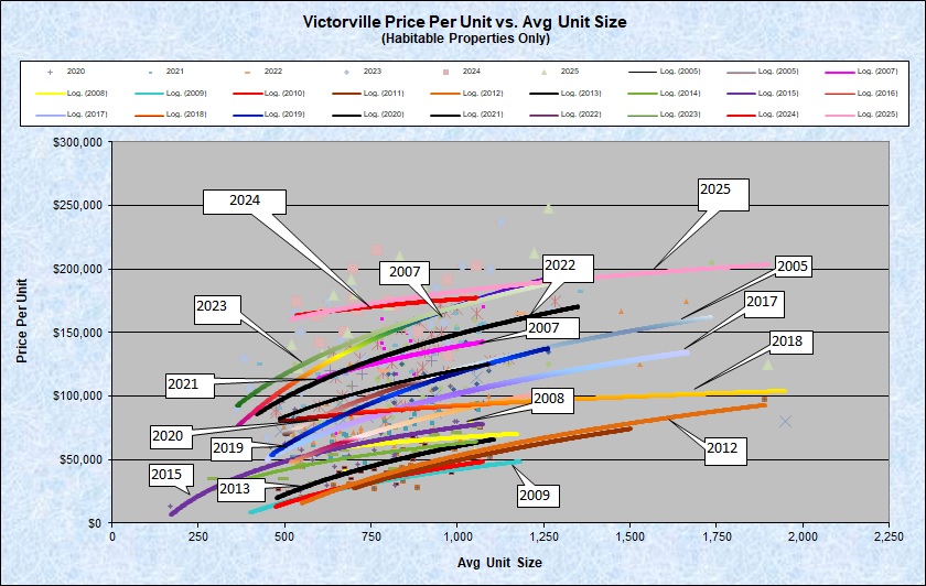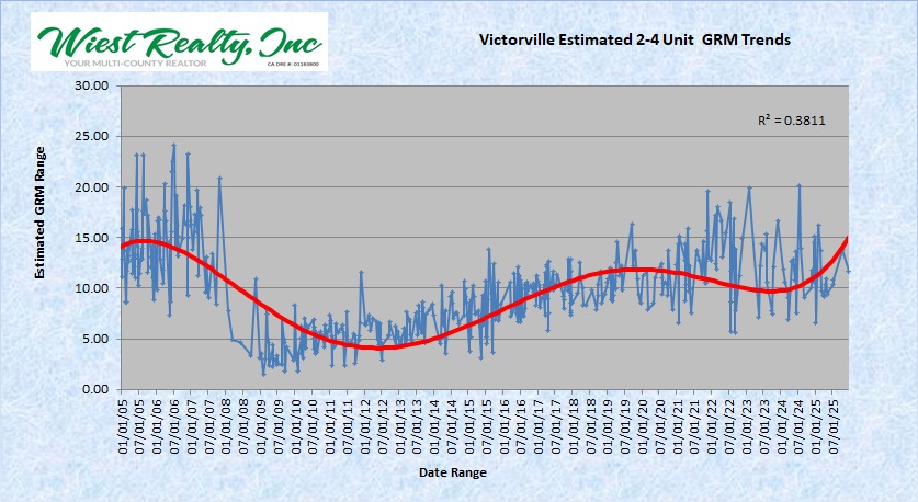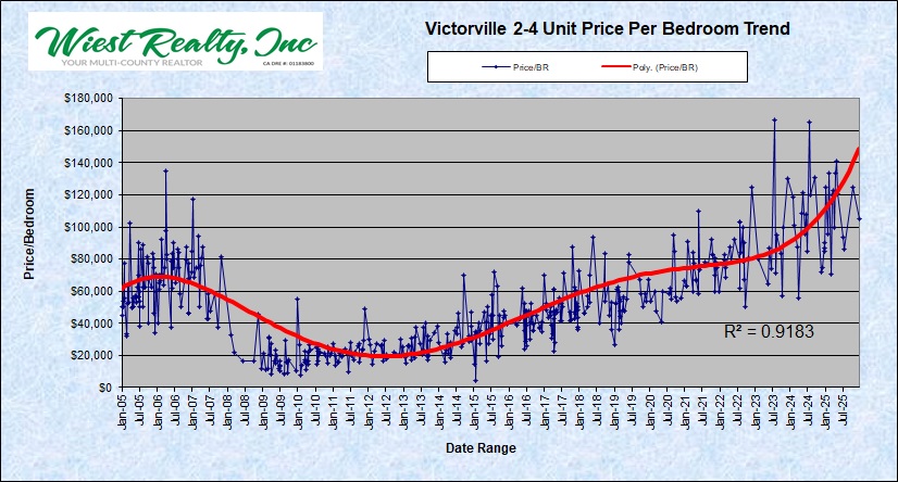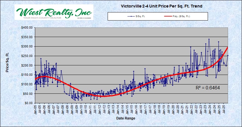 These charts show general trends, they should not be used to estimate value. Call us for a complementary broker price opinion. The Victorville data set is relatively small and the correlation coefficient is most data cases in marginal.